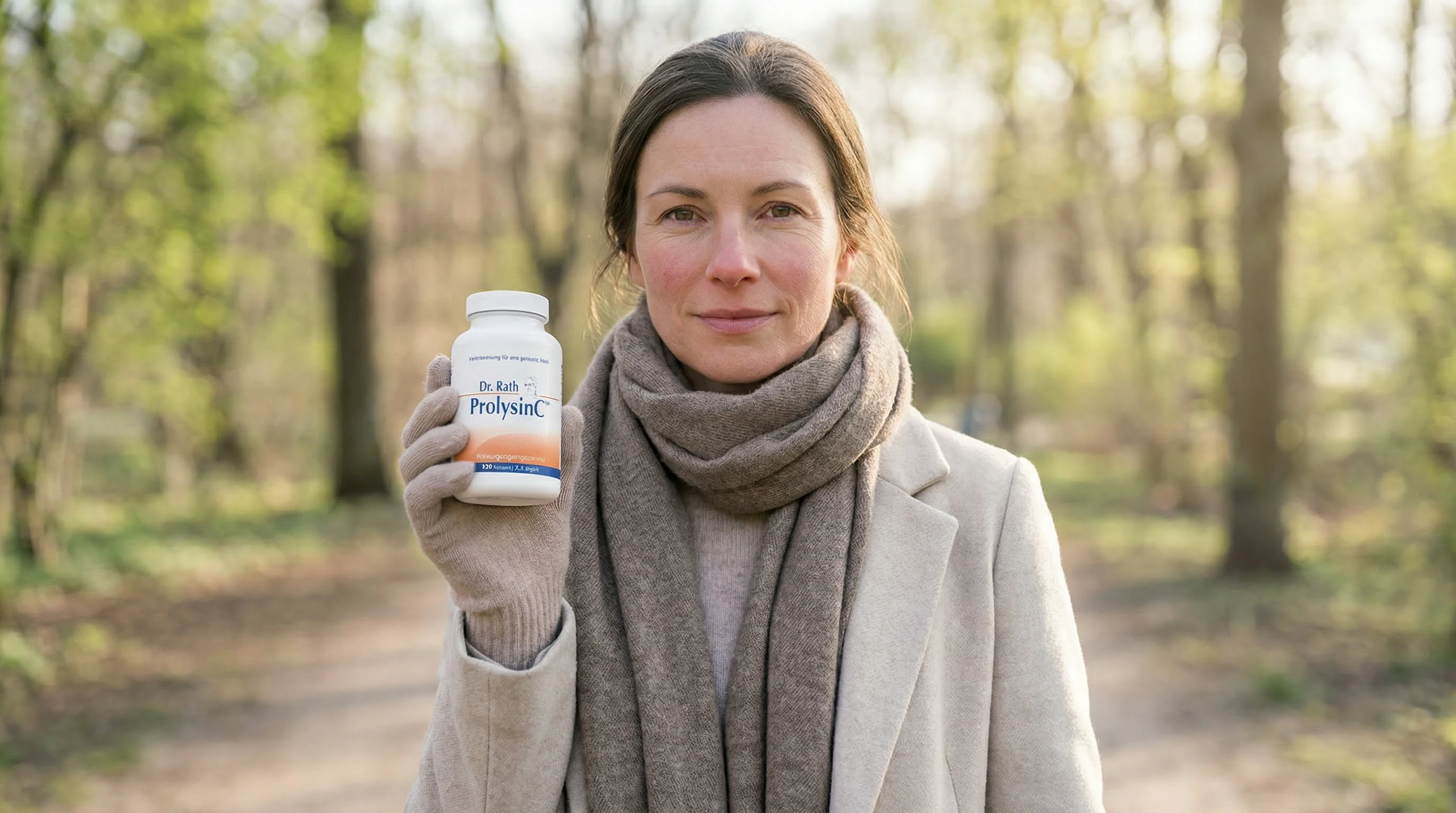 Die Mittelschicht unserer Haut, die Dermis, zählt zum straffen Bindegewebe. Dieser Bereich ist abhängig vom ständigen Neuaufbau von Kollagenstrukturen, die Elastizität bieten und gleichzeitig auch die Stabilität gewährleisten. Nicht das Hinzuführen von unspezifischem fremden Kollagen ist hier hilfreich, sondern die optimale Unterstützung der körpereigenen Kollagensynthese. Vitamin C ist das essentielle Schlüsselmolekül für diesen Vorgang, die körperverwandten Aminosäuren Prolin und Lysin sind die wichtigsten beteiligten Bausteine. Alle drei Protagonisten der Kollagenversorgung der Haut sind großzügig in ProlysinC™ enthalten.
