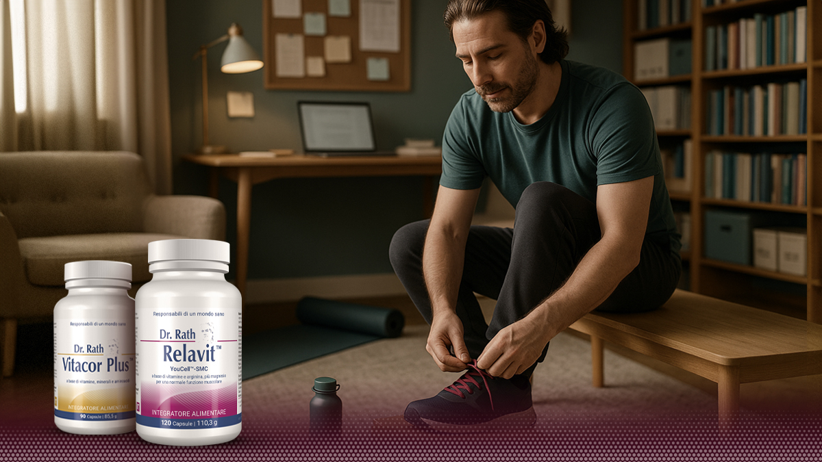 Relavit™ e Vitacor Plus™ formano la combinazione perfetta per muscoli e rilassamento. Sono compagni ideali per l’allenamento di resistenza e di forza, ma anche dopo lunghe ore seduti o in piedi: Vitacor Plus™ offre una solida base multivitaminica, mentre Relavit™ sostiene la circolazione e il movimento — dalla scrivania fino all’allenamento serale.